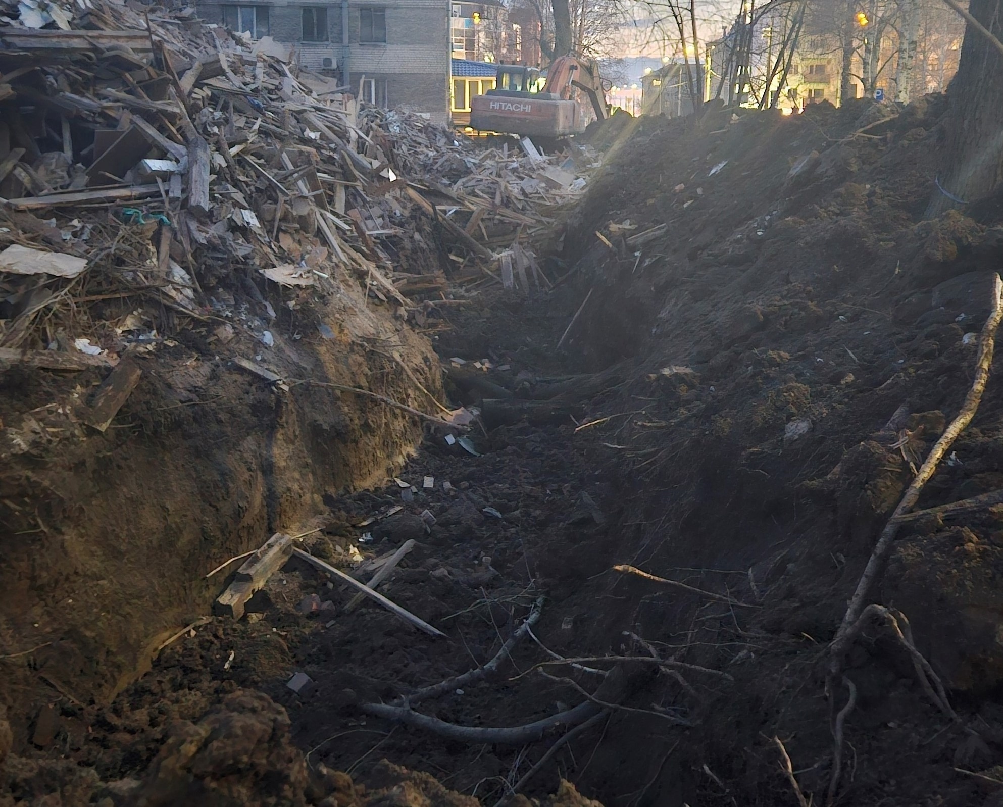 Нам же стали вешать лапшу, причём делали это так примитивно и нагло, что мы решили пойти до конца и сделали то, на что не разродились чиновники горадмина, которые зачем-то аж 4 раза выезжали на объект, — провели раскопки и воочию убедились, что под слоем земли находятся и доски, и брёвна, и прочий мусор. Всё, как мы и говорили.
