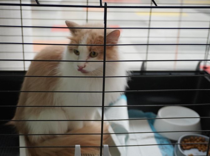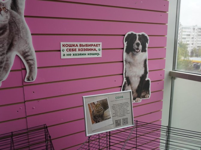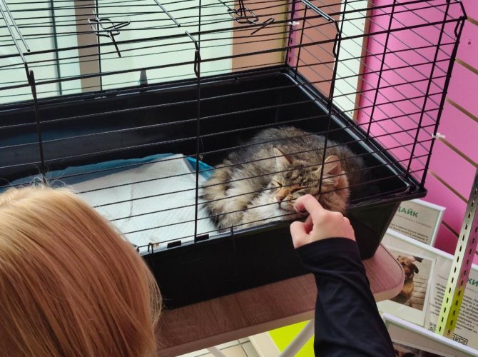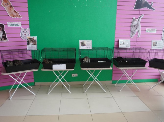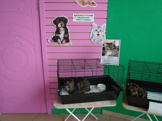 Сразу предупредим критику содержания кошек в клетках. Данное решение принято, чтобы защитить животных от слишком назойливого внимания — им спокойней, когда каждый первый не тянет руки, чтобы потрепать за ухом.