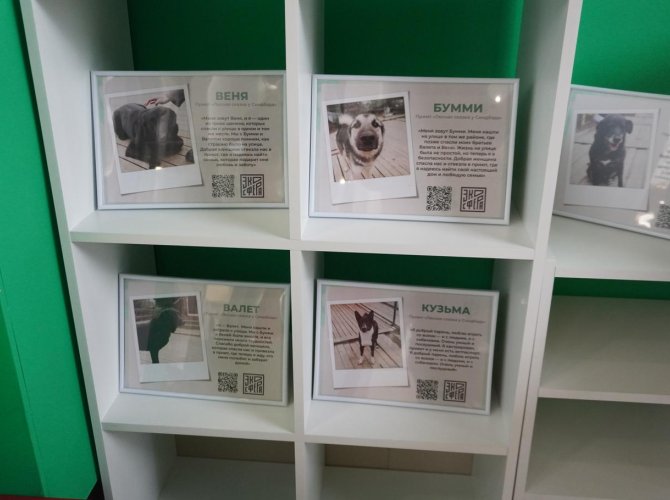 Кроме котов в приюте есть и собаки, но доставить лающую ораву в торговый центр весьма проблематично, однако они нуждаются в заботливых руках не меньше. Собак можно посмотреть на фотографиях в котокафе, на сайте приюта или лично приехать в товарищество Каркуль, что в Приморском округе. Там есть и породистые псы: две хаски, самоед и другие.