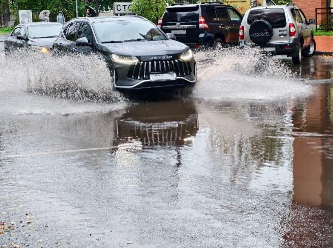 Каждый раз во время дождя Вологодскую топит от набережной до самого кладбища, а особенно большая лужа, длиной метров в 25 и шириной от тротуара до тротуара, появляется на её пересечении с проспектом Ломоносова. Скопление жидкости настолько объёмное, что там можно даже и поплавать; блогер Шишов, к примеру, мог бы заснять там новое видео — с полным погружением в городские проблемы, так сказать.