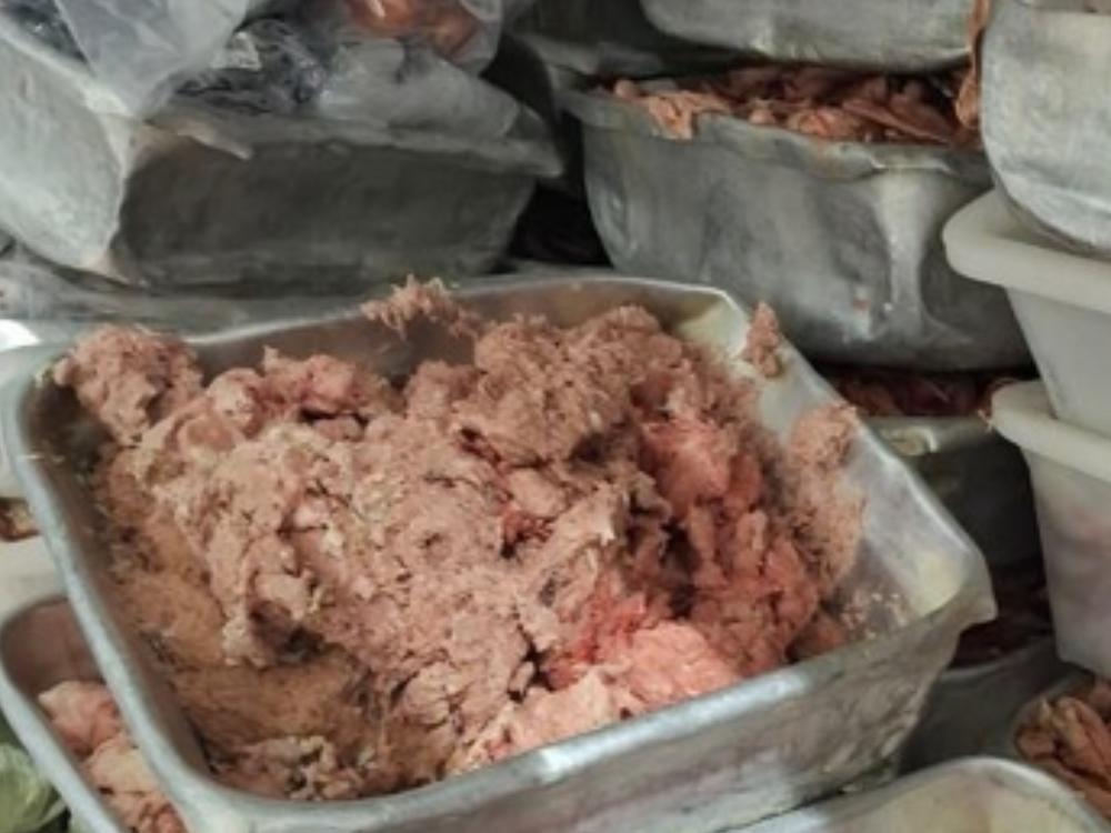 Фото РоссельхознадзораНа контейнерах с сырьём отсутствует информация о сроках переработки и датах выработки. То есть фиг знает, какой степени тухлости шло мясо в колбасы. А, фигня, солью и специями заглушить можно любой привкус.