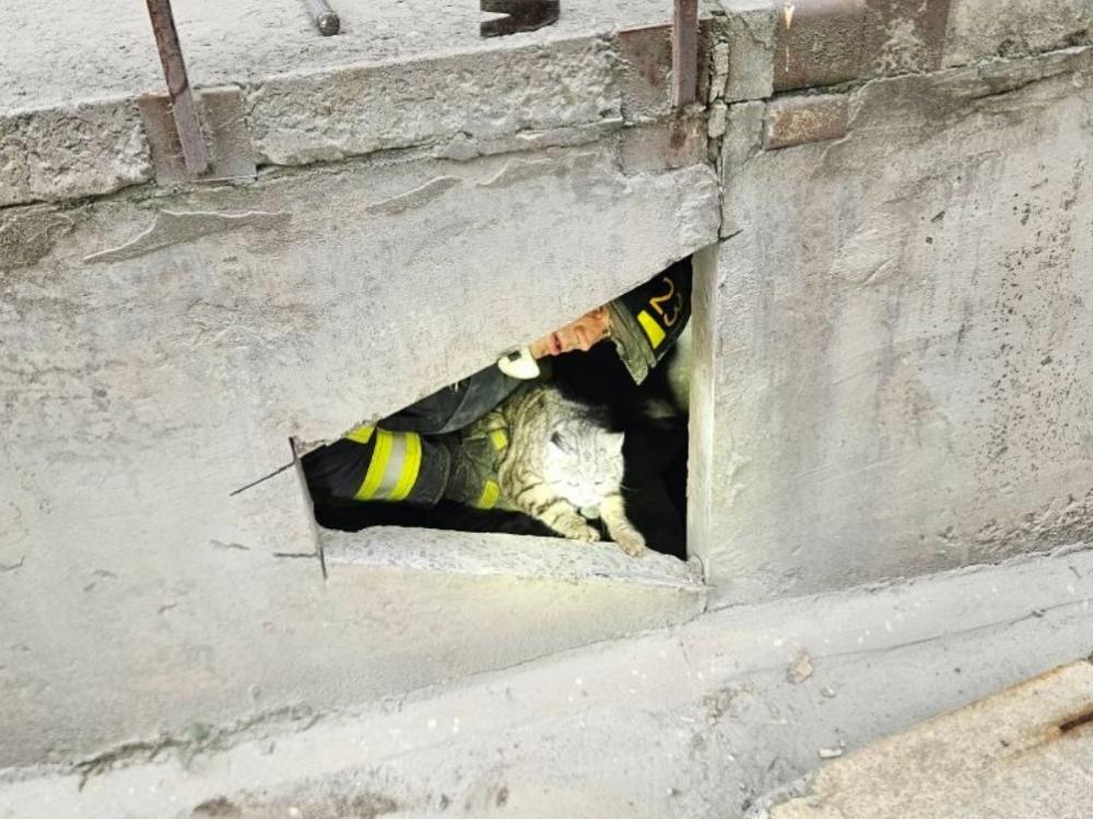 Прибывшие на место спасатели с разрешения представителей управляющей организации при помощи бензореза сделали технологическое отверстие в бетонной плите, в которое смог проникнуть сотрудник, доставший животное. Кот был передан заявителям в целости и сохранности.