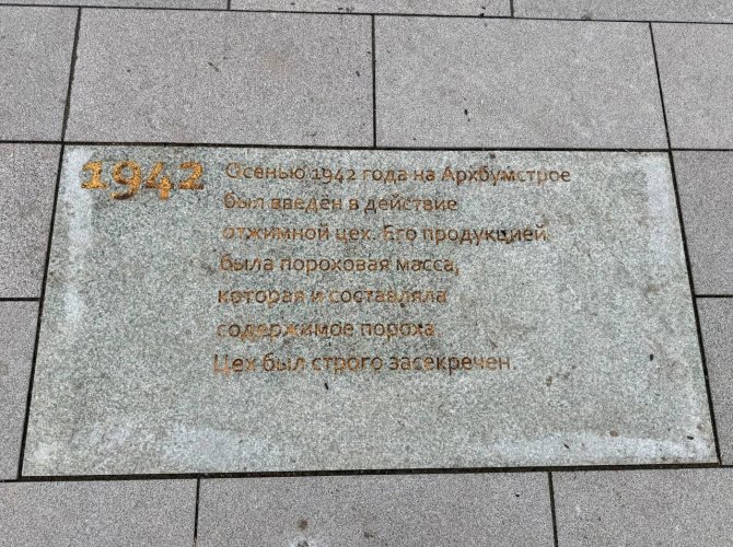 Кроме того, в сквере появились гранитные плиты с историческими фактами о роли предприятий региона, включая вклад Архбумкомбината и жителей посёлка Ворошиловский, в Победу над фашизмом.
