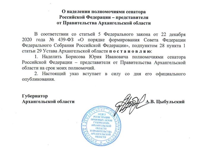 Юрий Борисов переназначен сенатором Совфеда от Архангельской области08.10.2025 14:37 Одним из первых решений переизбранного губернатора Поморья Александра Цыбульского после официального вступления в должность стало назначение Юрия Борисова на должность сенатора Совета Федерации от региона. Напомним, в феврале 2025 года данную должность покинул Александр Некрасов, который не интересовался жизнью региона от слова совсем. На его место был назначен Юрий Борисов, и сейчас его полномочия официально продлены по квоте губернатора. ![]() Нашли ошибку? Выделите текст, нажмите ctrl+enter и отправьте ее нам. | ||||