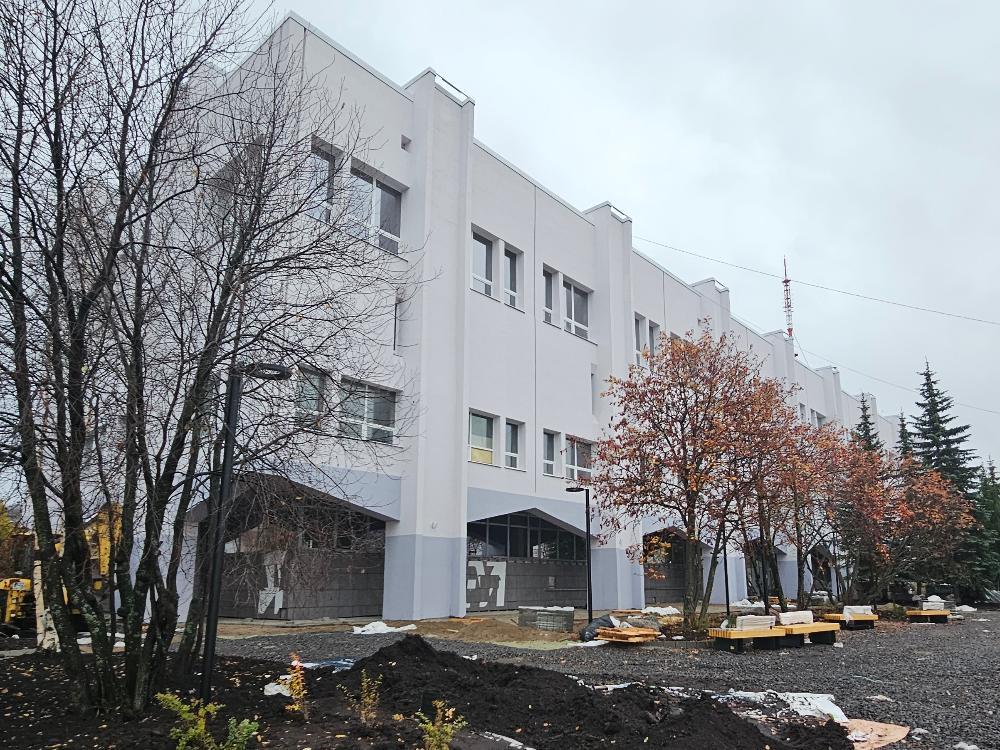 Ведутся работы по капитальному ремонту здания (внутренние работы), ремонту фасада и благоустройству прилегающей территории, три отдельных контракта.