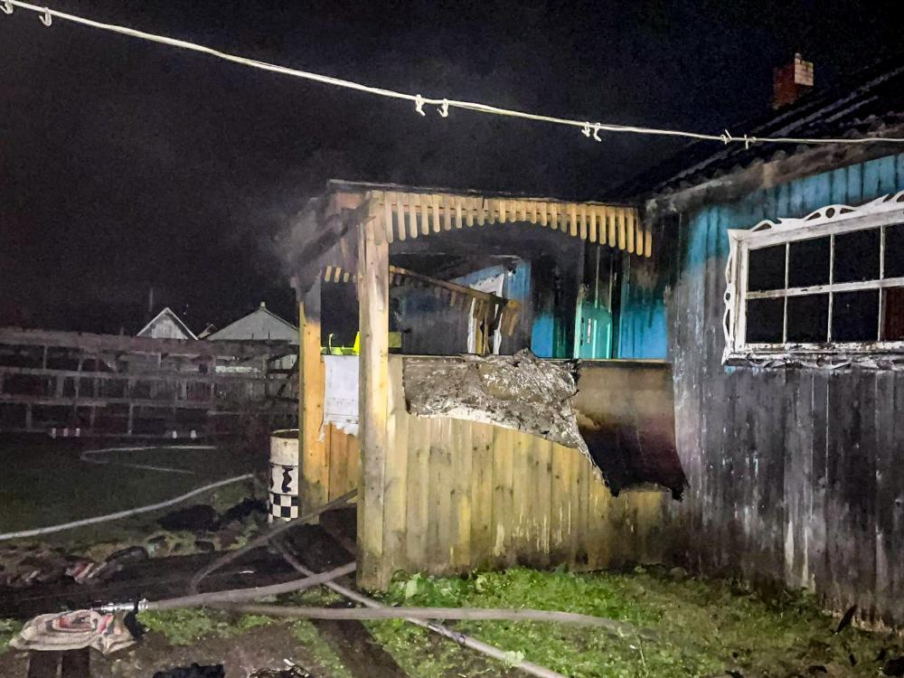 В результате пожара комната была полностью повреждена огнём, а дом закопчен по всей площади.