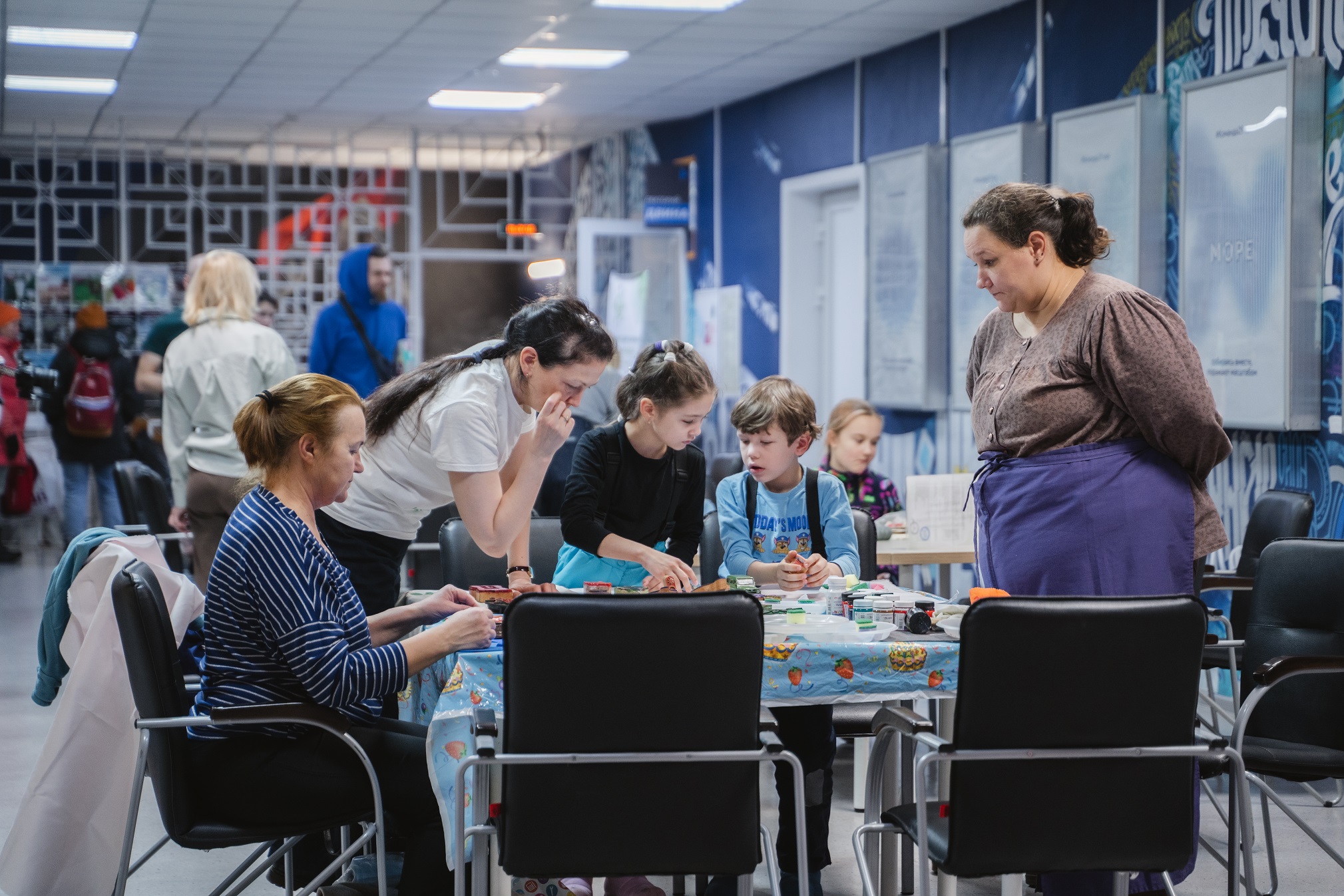 Также гости могли посетить творческие мастер-классы, зоны обмена книгами и играми, и пункт сбора для благотворительных проектов и вторсырья, куда можно было принести ПЭТ-бутылки, металлические крышки и даже контейнеры от киндер-сюрпризов. Всего участники мероприятия собрали более 30 кг этого вторсырья, которое было уже уехало в пункт приема — «Точку сбора» в Соломбале.