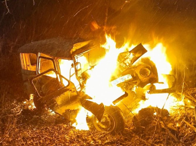 На место происшествия незамедлительно выехал расчет отдельного поста пожарной части № 24 из деревни Бережная. Прибыв, огнеборцы обнаружили горящий автомобиль. По предварительной информации, «уазик» загорелся от удара об дерево.
