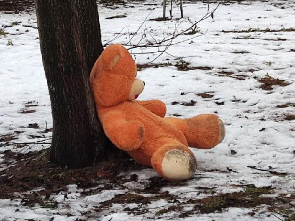 Вроде и плюшевый мишка, а ведь как живой. Когда-то любимый, сидевший на диване в тёплом углу, у него, наверное, даже имя было, теперь никому ненужный, безымянный, мокнет грязный, понуро сидя под деревом.