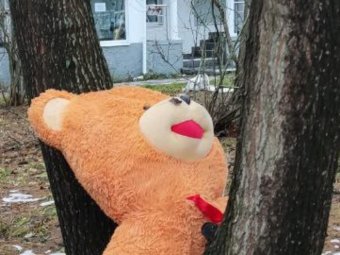 И вот сегодня чувствительные прохожие отмечают, что лицо у мишки повеселело, он оптимистично смотрит в небо и, кажется, готов снова забраться на дерево.