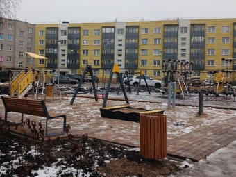 На площадке смонтированы спортивные снаряды и игровое оборудование для детей. Все строительно-монтажные работы на объекте завершены.