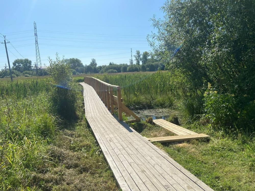 Благодаря проекту «Ремонт тротуаров от улицы Лесная до улицы Сплавщиков в поселке Боброво» благоустроили деревянный тротуар.