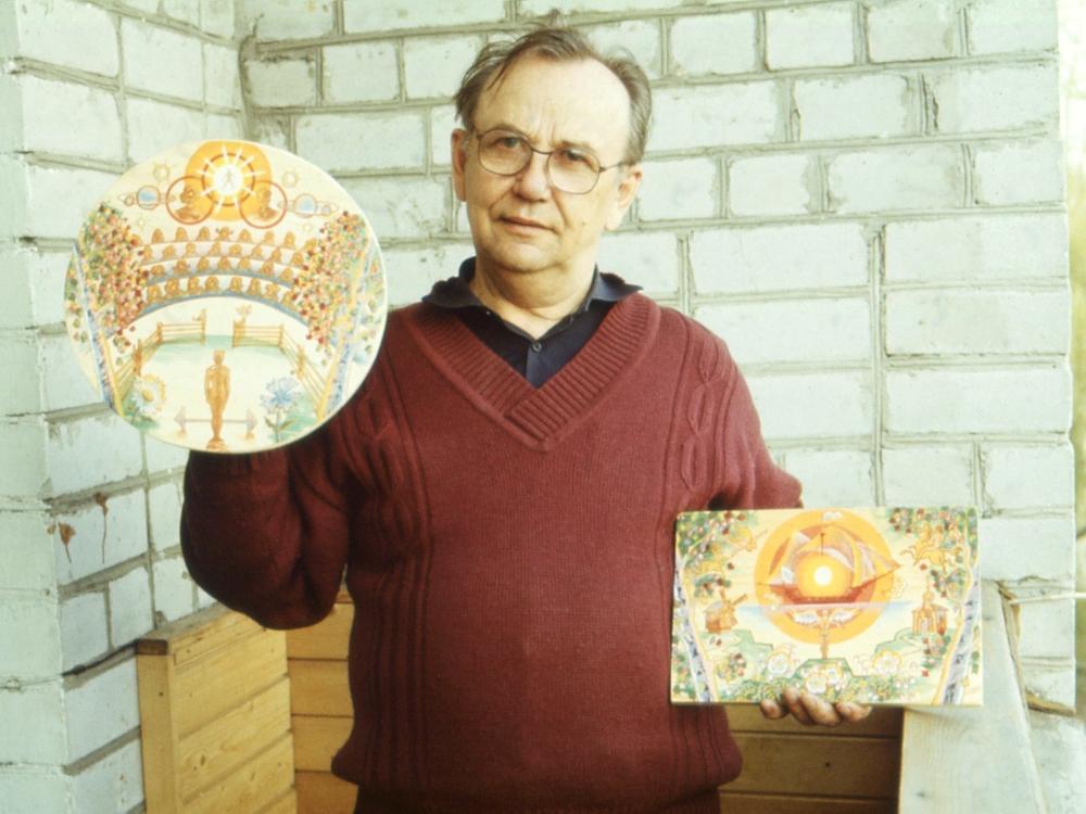 Дело в том, что свою наиболее масштабную серию картин по мотивам стихов Уолта Уитмена «Стол, накрытый для всех» Евгений в начале 2000-х годов отдал в архангельскую организацию «Чернобыль.Надежда», находившейся в те годы в высотке, для дальнейшей реализации и продажи.