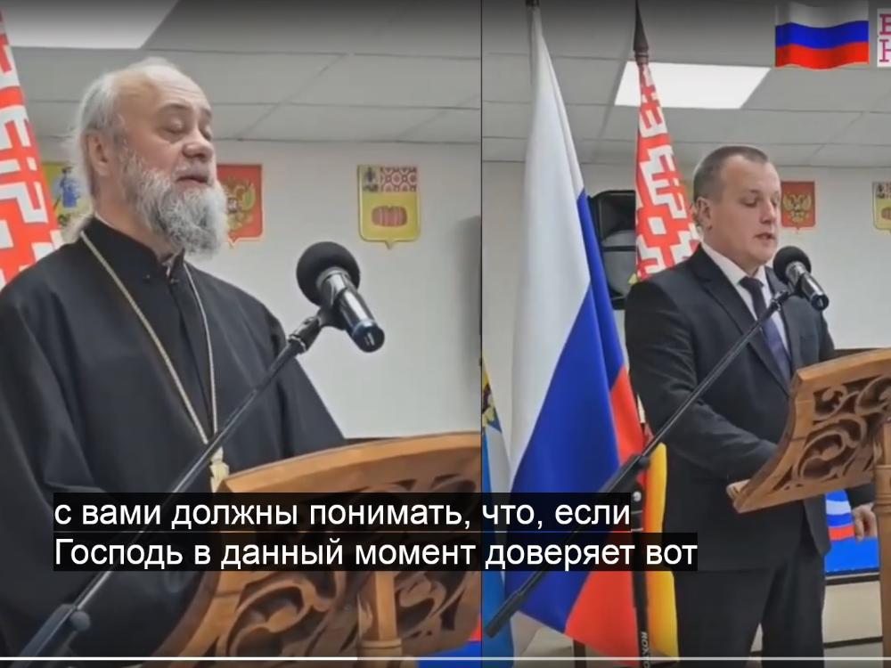 «Всякая власть от Бога. Потому мы с вами должны понимать, что если Господь в данный момент доверяет вот Андрею Викторовичу [Гуляеву] руководство нашим округом, то и соответственно мы должны ему доверять», — так молвил священнослужитель на «инаугурации» главы Вельского муниципального округа Архангельской области Гуляева.