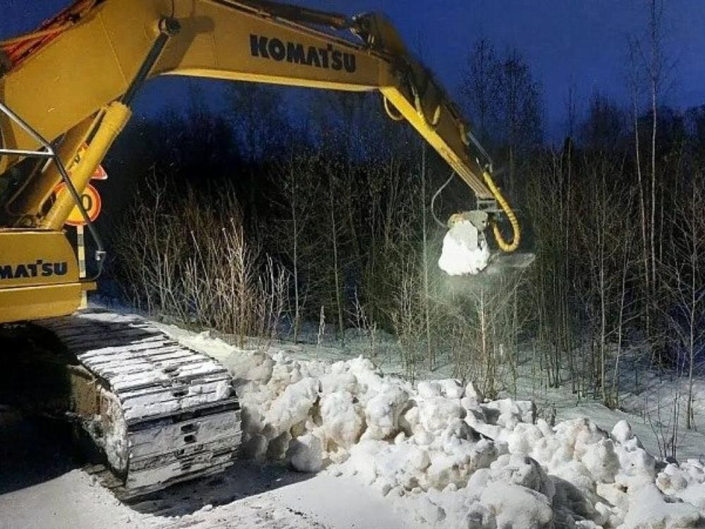 На объекте задействованы 56 рабочих и целый парк техники: экскаваторы, грейдеры, бульдозеры и дробильный комплекс.