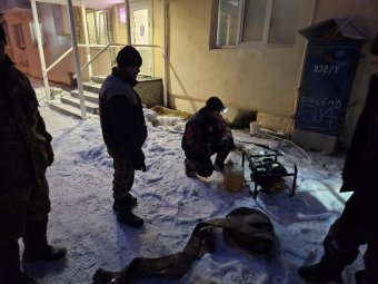 Из-за разрыва трубы там горячая вода затопила подвал, а пар, поднимаясь в подъезд, замерзал, образуя снежные наросты.