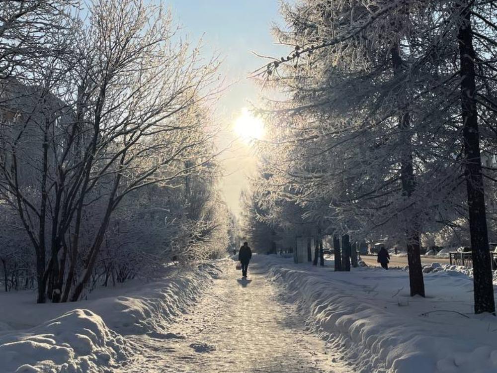 В четверг днём -26°, облачно с прояснениями. Ветер южный, почти штиль. Ночью -25°.