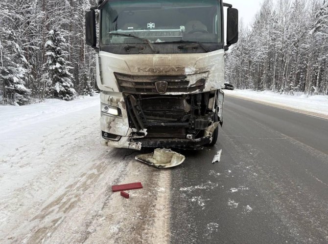 Произошло столкновение с двигавшимся во встречном направлении автомобилем «КамАЗ» в сцепке с полуприцепом «Щмитц».