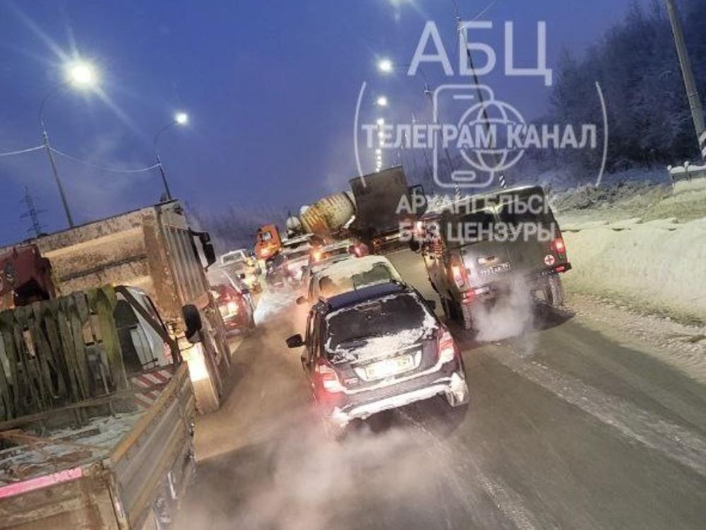 Сегодня в Архангельске на улице Ленина произошло ДТП. По информации пресс-службы регионального УМВД, водитель «КамАЗа» не справился с управлением, после чего грузовик развернуло поперек проезжей части. Это привело к столкновению с автомобилем «DAF», который ехал сзади.