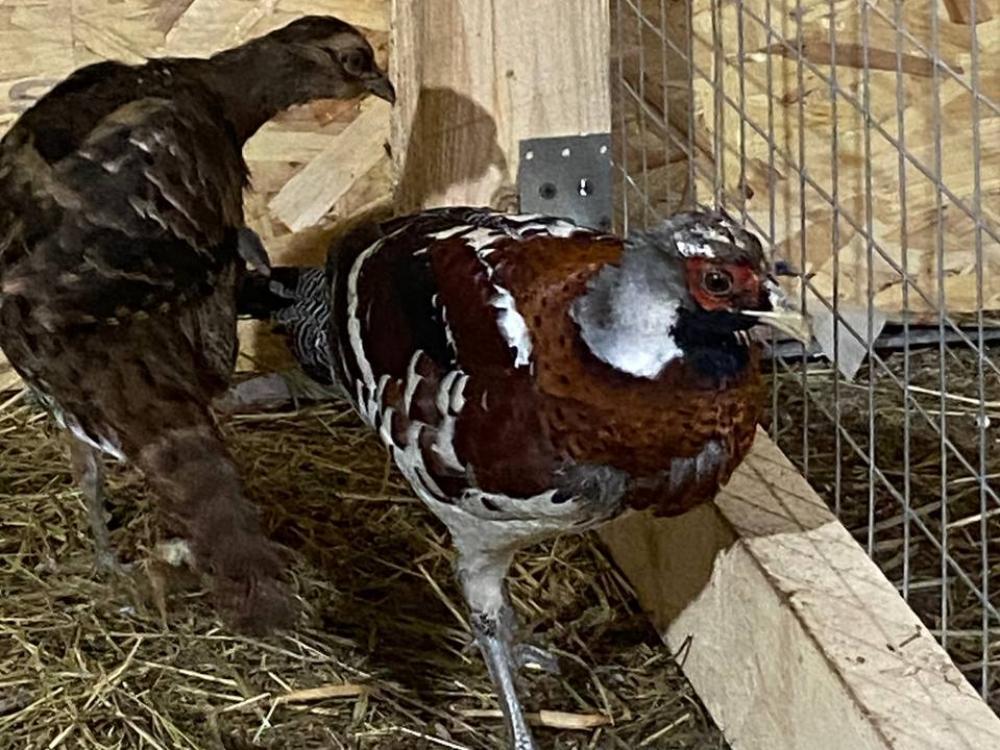 Детство героя публикации прошло вместе с курями, которые были больше его в размере более, чем в 2 раза. Не давал себя в обиду. Как заправский боец, он полгода ждал сою самку и дождался! Теперь у них собственное гнездышко, где они живут вдвоём.