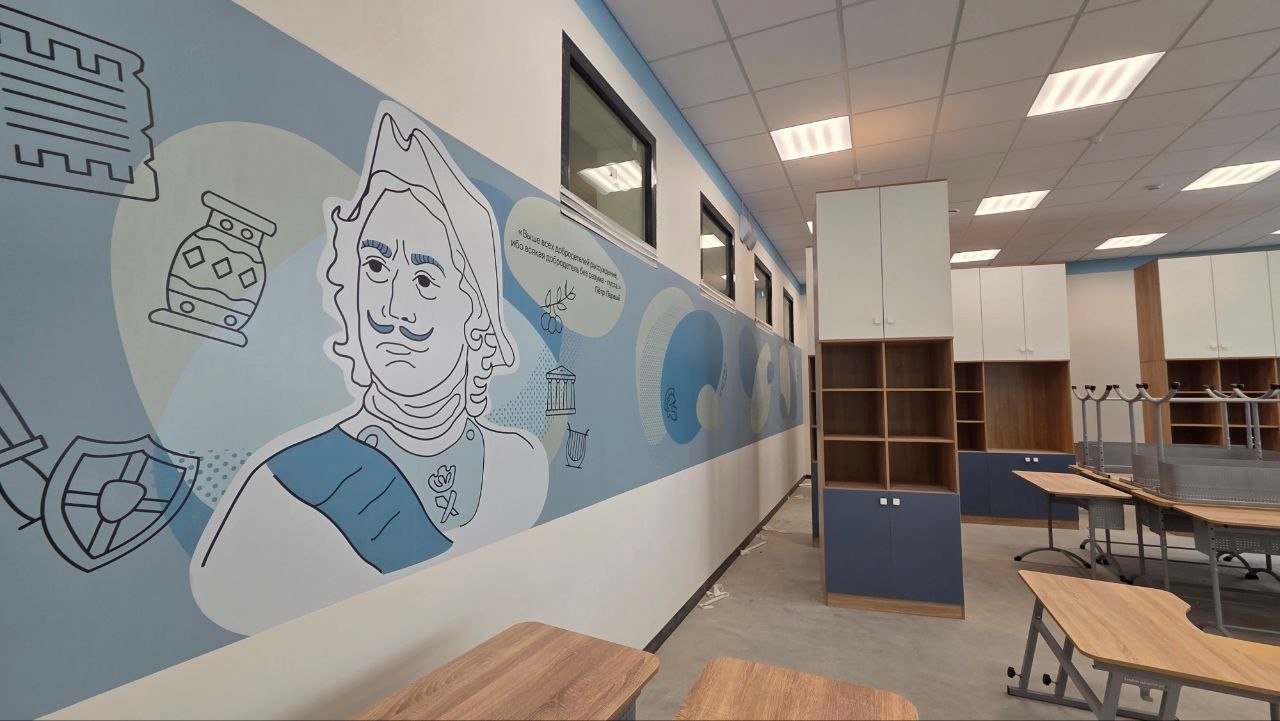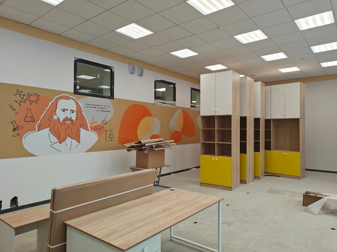 В школе №2 завершены отделочные работы, за исключением актового и спортивного залов, а также пищеблока. Ведется монтаж учебного оборудования и мебели.