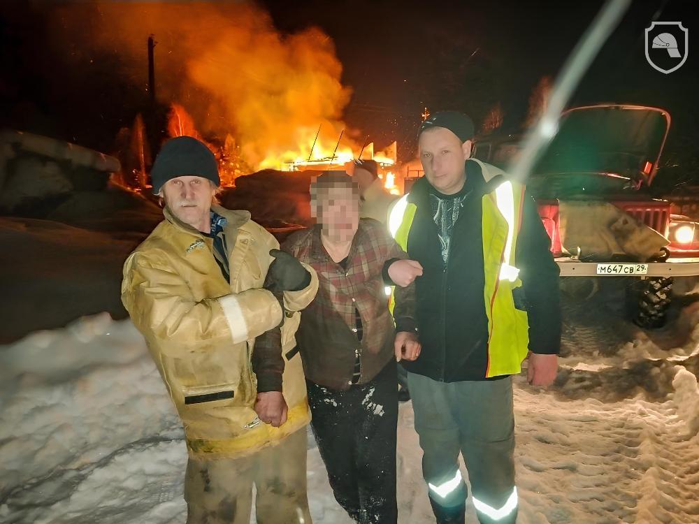 Хозяин дома лежал на крыльце под обломками кровли, его вытащили работники пожарной охраны и передали бригаде скорой помощи. Мужчину с ожогами второй степени в области шеи, а также обморожением нижних конечностей доставили в Няндомскую ЦРБ.