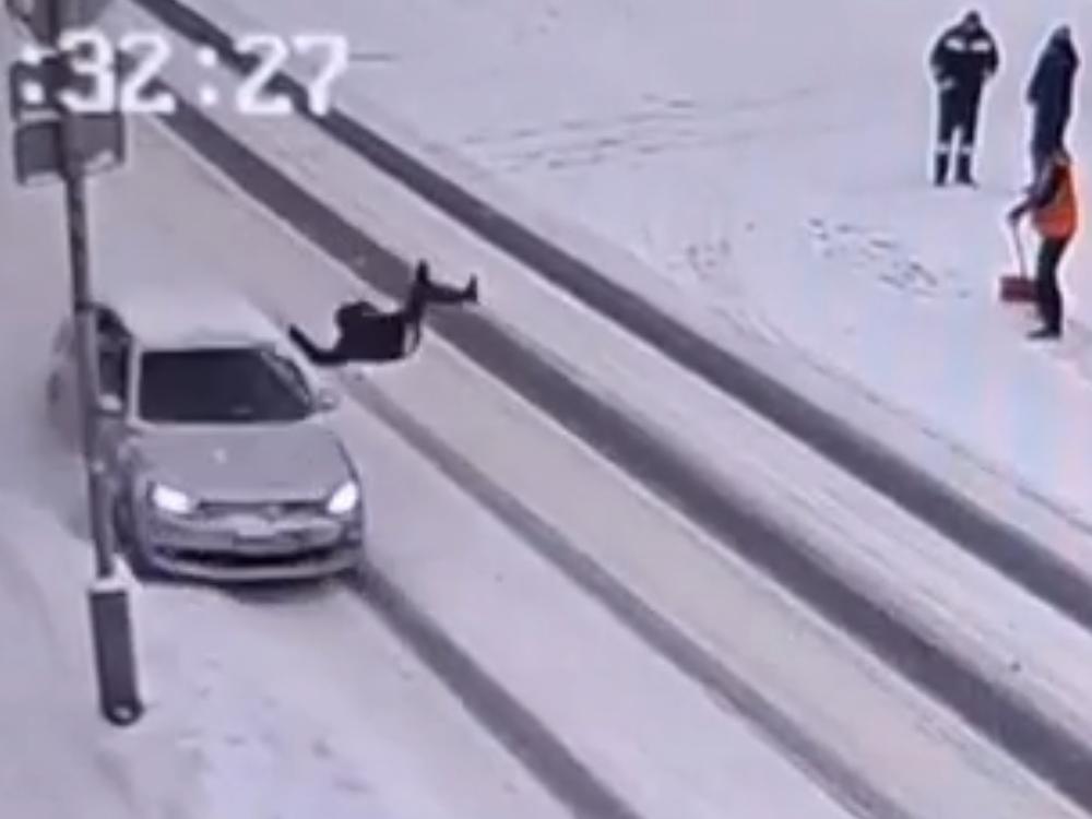 Водитель «Фольксвагена» успел среагировать и попытался уйти в сторону на заснеженной дороге. Если бы дед остановился, то всё бы закончилось благополучно, но пенсионер буквально сиганул под колёса авто и был им сбит.