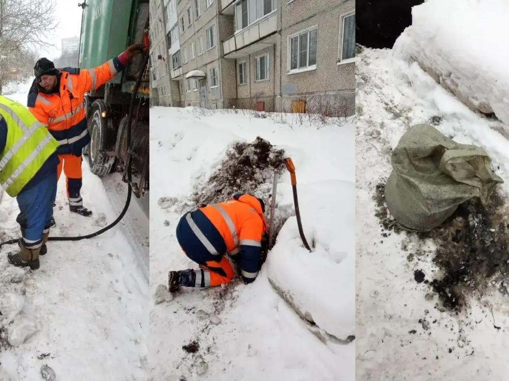 При устранении засора и промывке коллектора бригады водоканала извлекли большое количество ветоши, которая полностью перекрыла трубу и не давала уходить сточным водам. Сейчас работа канализации восстановлена, система работает штатно.