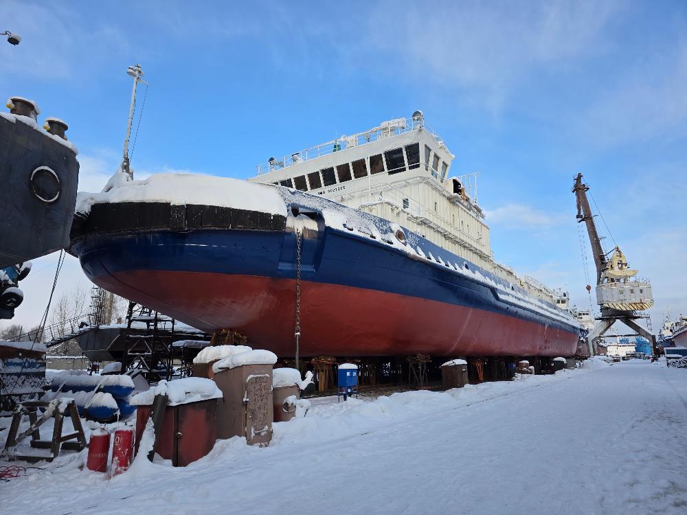 Ремонтные работы идут с августа 2025 года. Для их проведения впервые в истории предприятия был поднят на слип ледокол. К настоящему времени завершены работы по очистке и покраске, сейчас специалисты занимаются винторулевым комплексом судна. Винты судна имеют большой диаметр — 2 метра и весят 2,5 тонны.