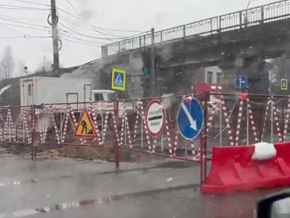 Читатель ИА «Эхо СЕВЕРА» прислал в редакцию видео пробки на Московском проспекте и её причины — двух перекрытых полос. Кадры были сделаны сегодня днём, но, несмотря на разгар рабочего вторника, никаких людей в касках на объекте замечено не было.