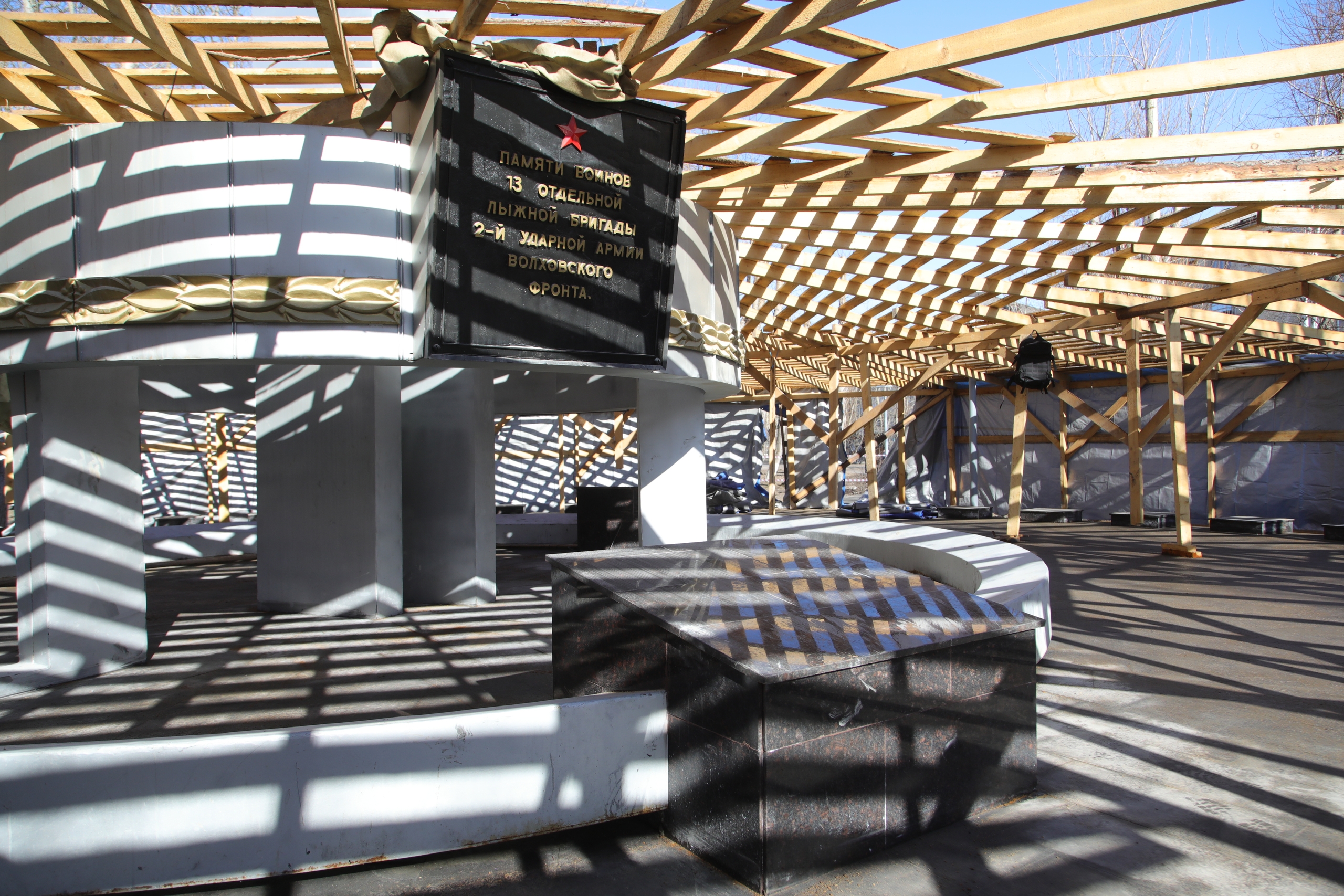 Работы по благоустройству памятного знака в честь 13-й отдельной лыжной бригады 2 Ударной армии Волховского фронта в сквере на пересечении улиц Мира и Логинова находятся во второй стадии, которая включает в себя нанесение имён бойцов на пилоны и их установку. Ранее памятный знак отделали гранитными плитами, а также установили опоры освещения со светильниками, смонтировали прожекторы.