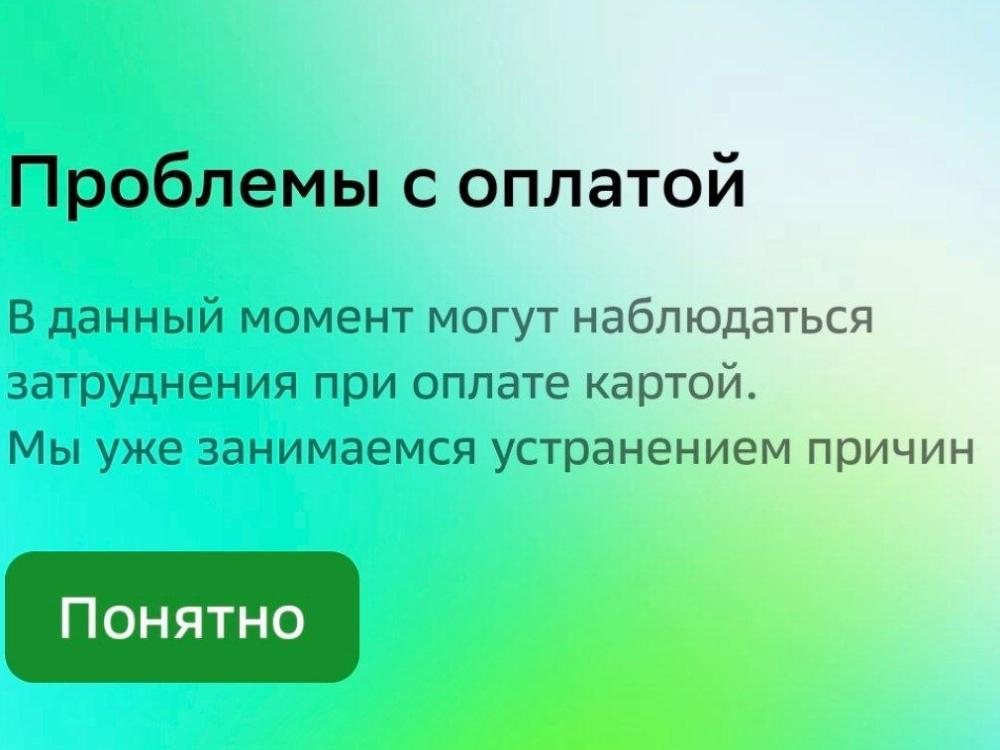«В данный момент могут наблюдаться затруднения при оплате картой. Мы уже занимаемся устранением причин», — сказано в сообщении, что следует из информации в приложении «Сбербанка».