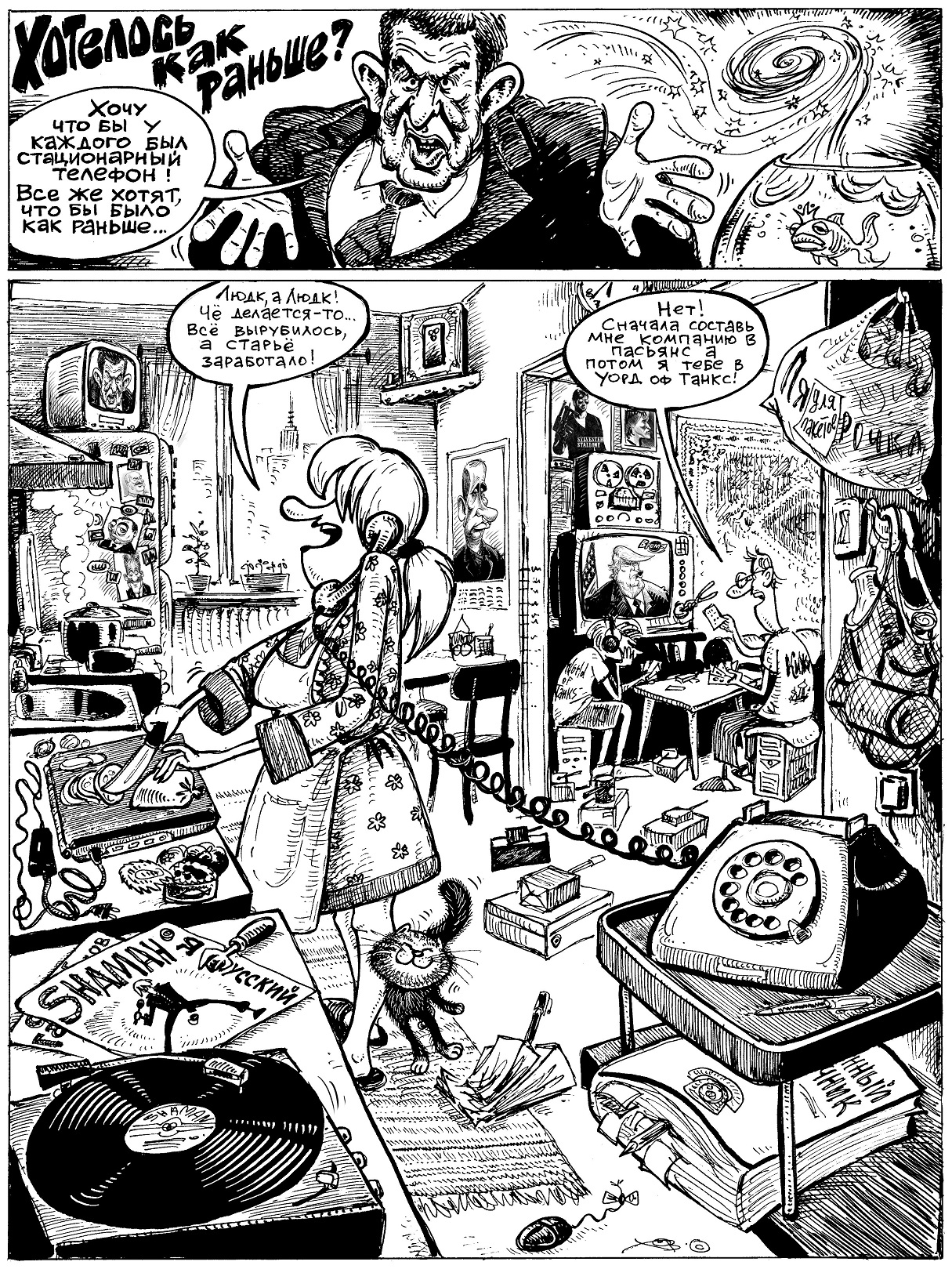 Короче. Вспомним, как хорошо было при СССР, до того, как Горби со своей сраной перестройкой явился: жили — не тужили: дома телефон, столик маленький под ним. Телевизор с двумя каналами. Чёрно-белый. Ламповый. Лучше работал, если по нему