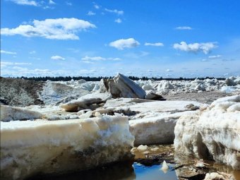 По Главному руслу Холмогорского разветвления и в устьевой области Северной Двины наблюдается редкий ледоход из мелкобитого льда.