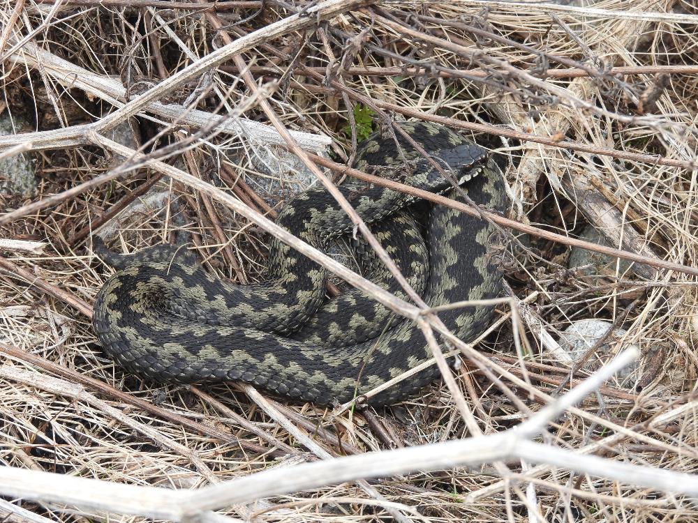 В этом году удалось засвидетельствовать один из самых ранних выходов змей из зимних убежищ — начало апреля. Во время таких весенних выходов змеи иногда сворачиваются в плотный спиральный клубок, а иногда расправляются — становятся широкими и плоскими. Это помогает им согреваться и удерживать нужную температуру. Такое поведение в науке называют «баскингом», оно нужно для терморегуляции.