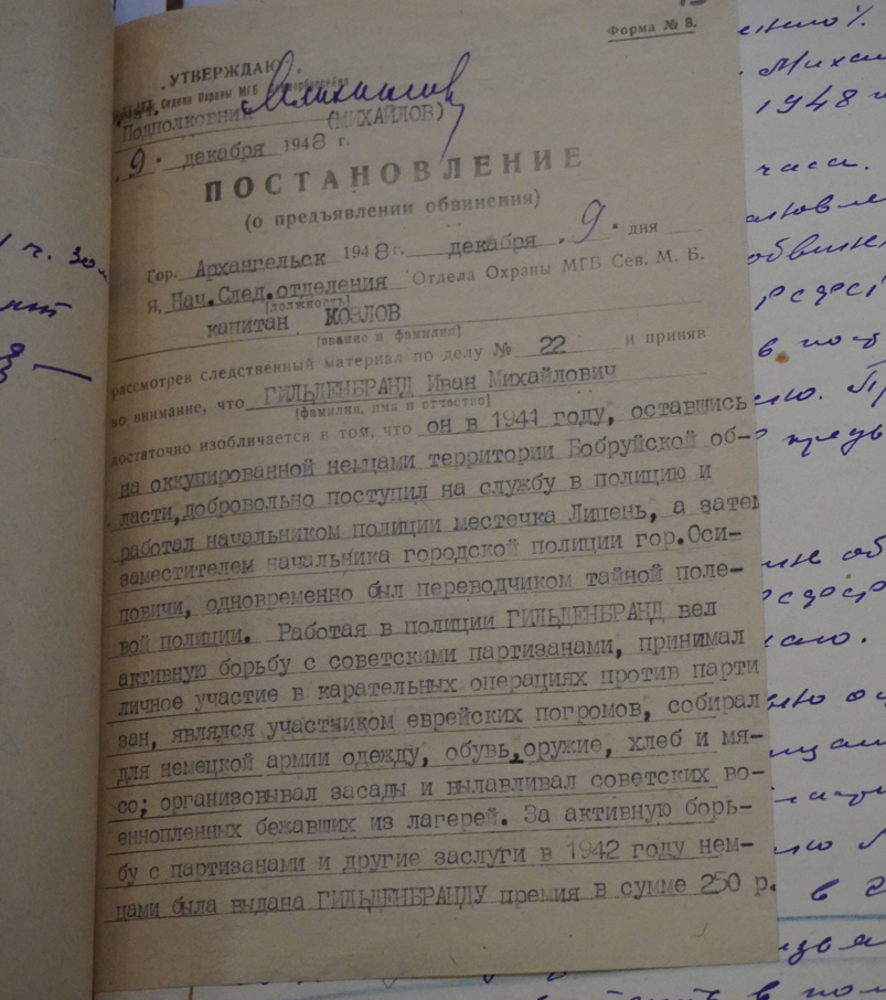Так и вычислили «героя» данной публикации. Когда за ним пришли, жена и дочь всячески старались выгородить отца и мужа, а вот сын, понимая к чему идет дело, выложил все, что знает про Гильденбранда старшего. Именно его показания и легли в основу обвинения, подтверждая все зверства, описанные белорусами.