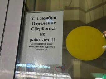 В Архангельске за несколько последних месяцев прекратило существование отделение «Сбера» на улице Гайдара (таким образом, в огромном квадрате Логинова — Обводный — Гагарина — Троицкий не осталось ни одного офиса банка), а в Северном округе единственное отделение в феврале закрыли на реконструкцию.