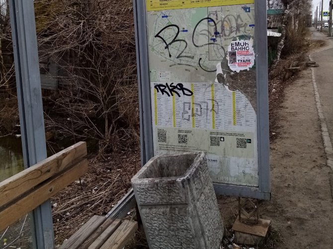 Ранее мы обращали внимание на разрисованные, разбитые и раскуроченные автобусные остановки в центральной части Архангельска, но то, что творится на окраинах города — это просто ужас.