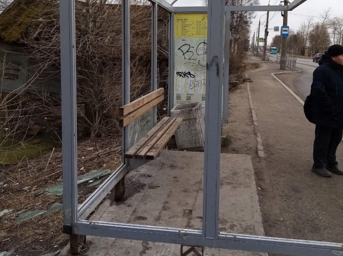 На фото — остановка у 95-й школы на Ленинградском проспекте. Ни крыши, ни стенок. На единственном относительно целом стекле красуется покоцанное расписание. И такая ситуация на Ленинградском проспекте начинается с Красной Звезды.