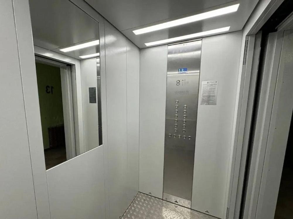 В каждом подъезде собраны новые кабины лифтов без обрамлений — они заказаны, поставка ожидается в мае. Специалисты выполняют расключение электрооборудования и пусконаладочные работы.