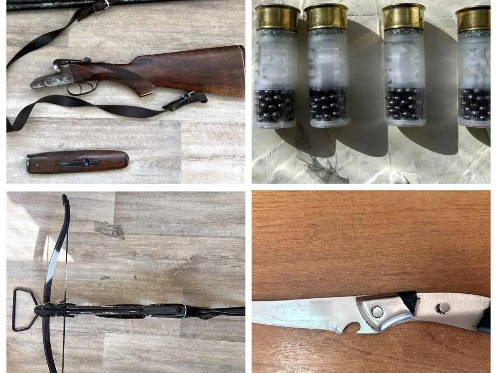Сотрудники полиции изъяли у задержанных похищенный рюкзак, а также нож, арбалет, гладкоствольное ружье, боеприпасы и балаклавы. Выяснилось, что разрешения на владение оружием у мужчин отсутствуют.