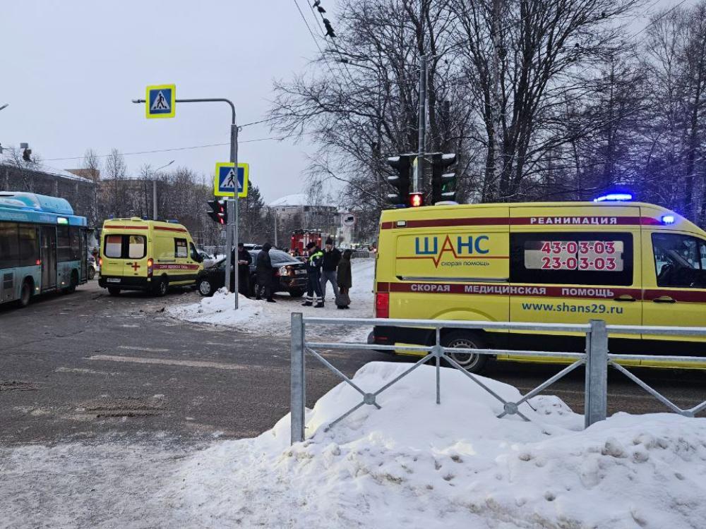 На перекрестке столкнулись «Toyota Land Cruiser Prado» и «Ford Focus». Обе машины получили серьезные повреждения. От удара «Focus» отбросило на тротуар, где стоял пешеход. Его госпитализировали. О пострадавших водителях пока нет информации. На месте работают две реанимационные бригады и расчет спасателей.